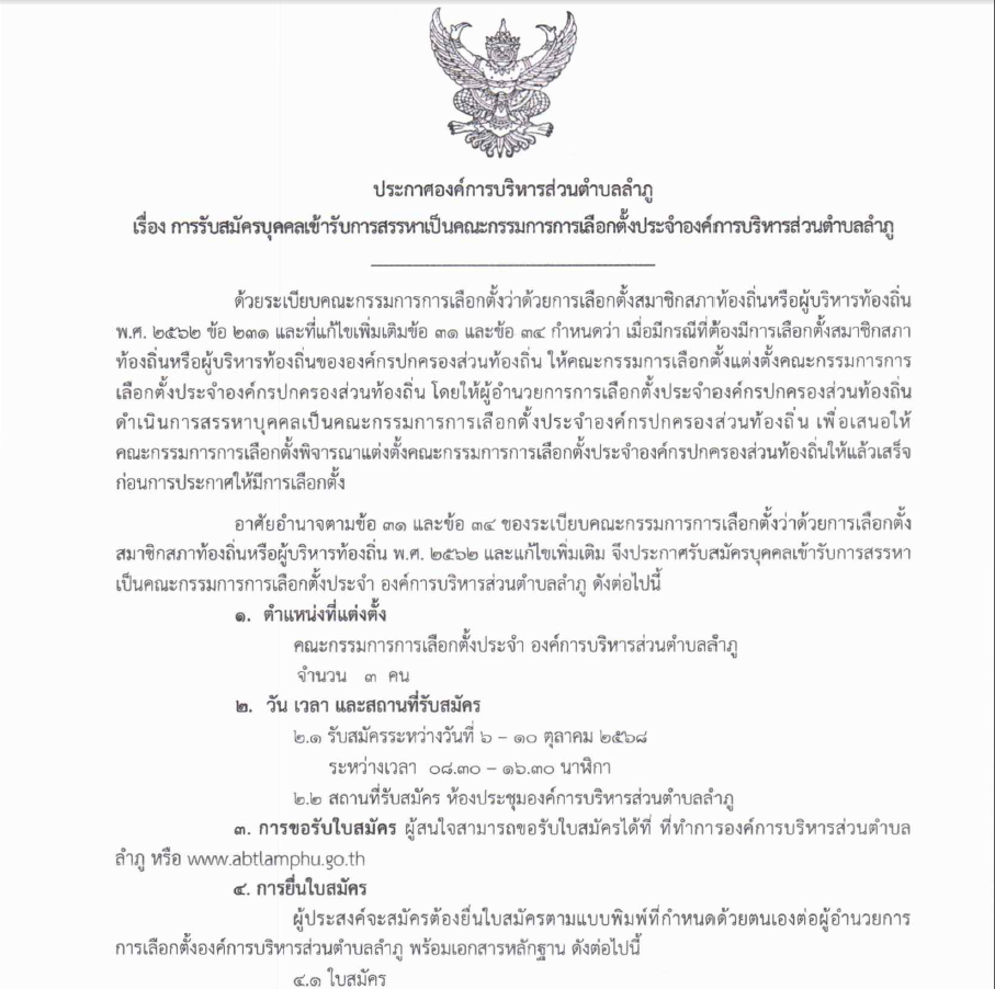 ประกาศองค์การบริหารส่วนตำบลลำภู เรื่อง การรับสมัครบุคคลเข้ารับการสรรหาเป็นคณะกรรมการการเลือกตั้งประจำองค์การบริหารส่วนตำบลลำภู เขียนโดย ไฟซอล มะมิงซี หมวด: ข่าวเผยแพร่ ดาวนโหลด