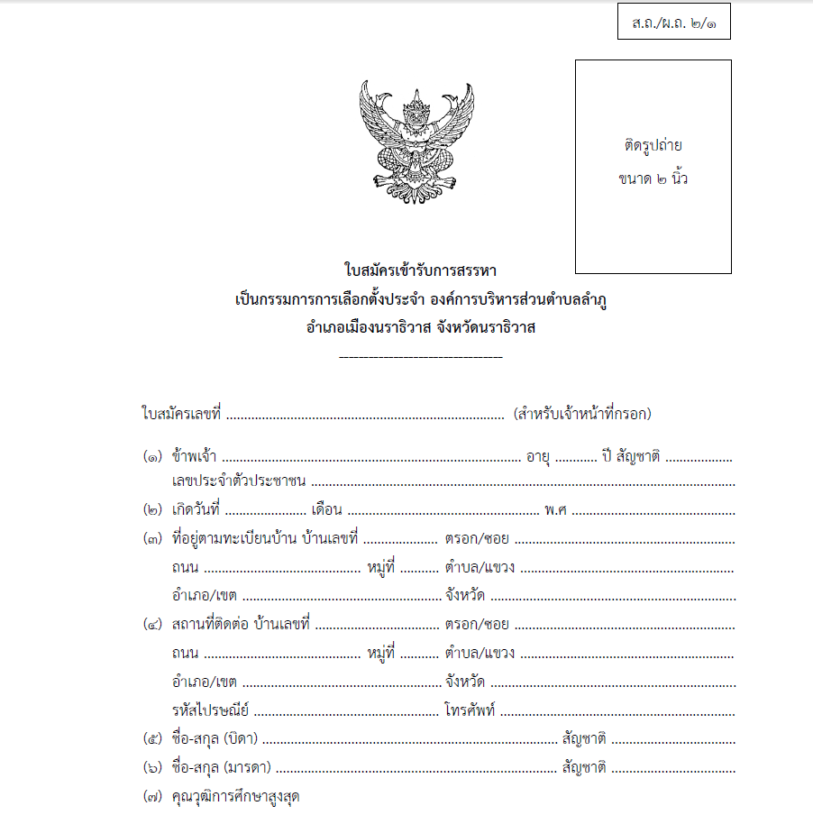 ใบสมัครเข้ารับการสรรหา เป็นกรรมการการเลือกตั้งประจำ องค์การบริหารส่วนตำบลลำกู อำเภอเมืองนราธิวาส จังหวัดนราธิวาส เขียนโดย ไฟซอล มะมิงซี หมวด: ข่าวเผยแพร่ ดาวนโหลด