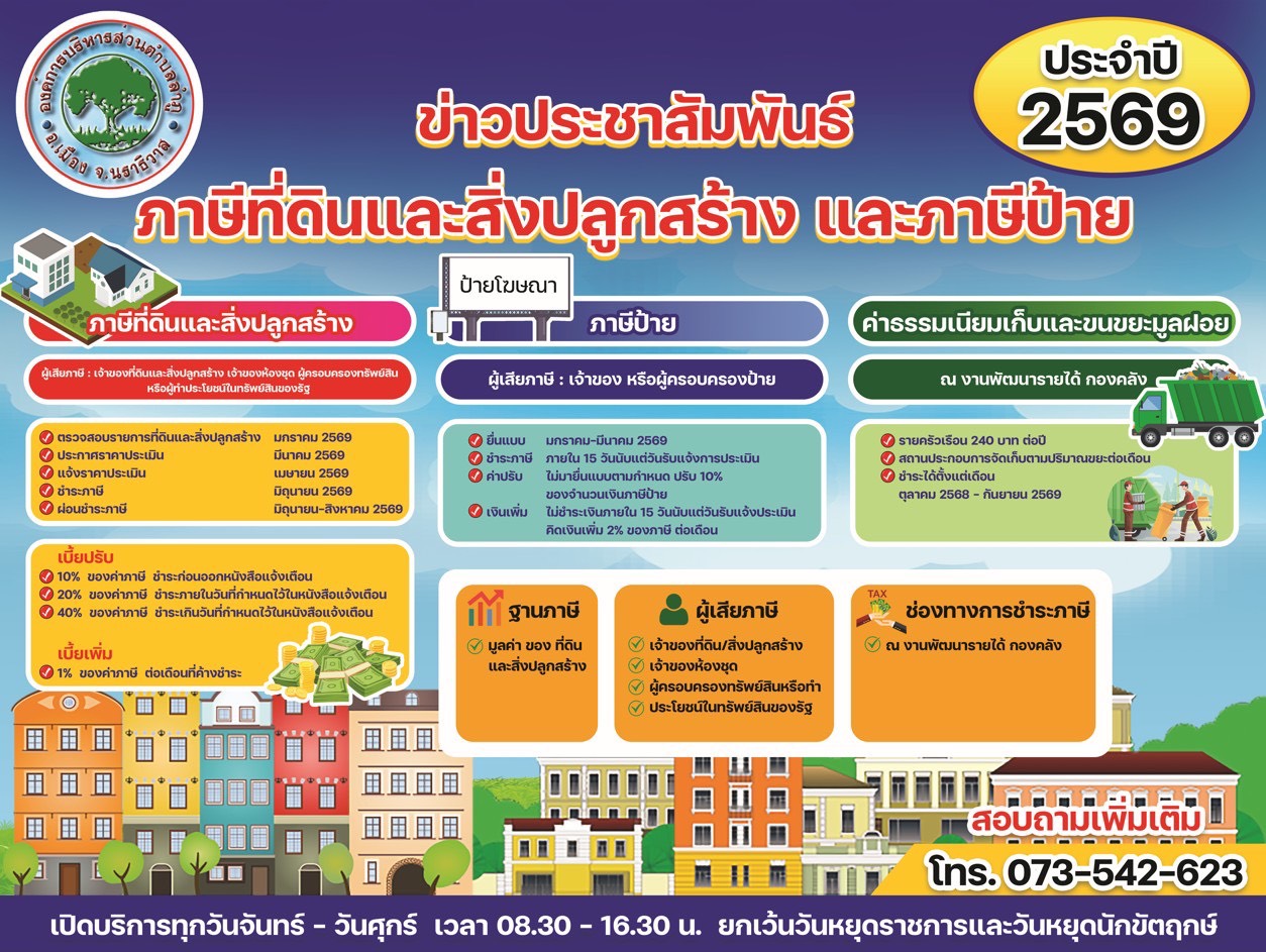 ข่าวประชาสัมพันธ์ภาษีที่ดินและสิ่งปลูกสร้าง และภาษีป้าย เขียนโดย อีรฟาน ประสิทชัยวุฒิ หมวด: ข่าวประชาสัมพันธ์